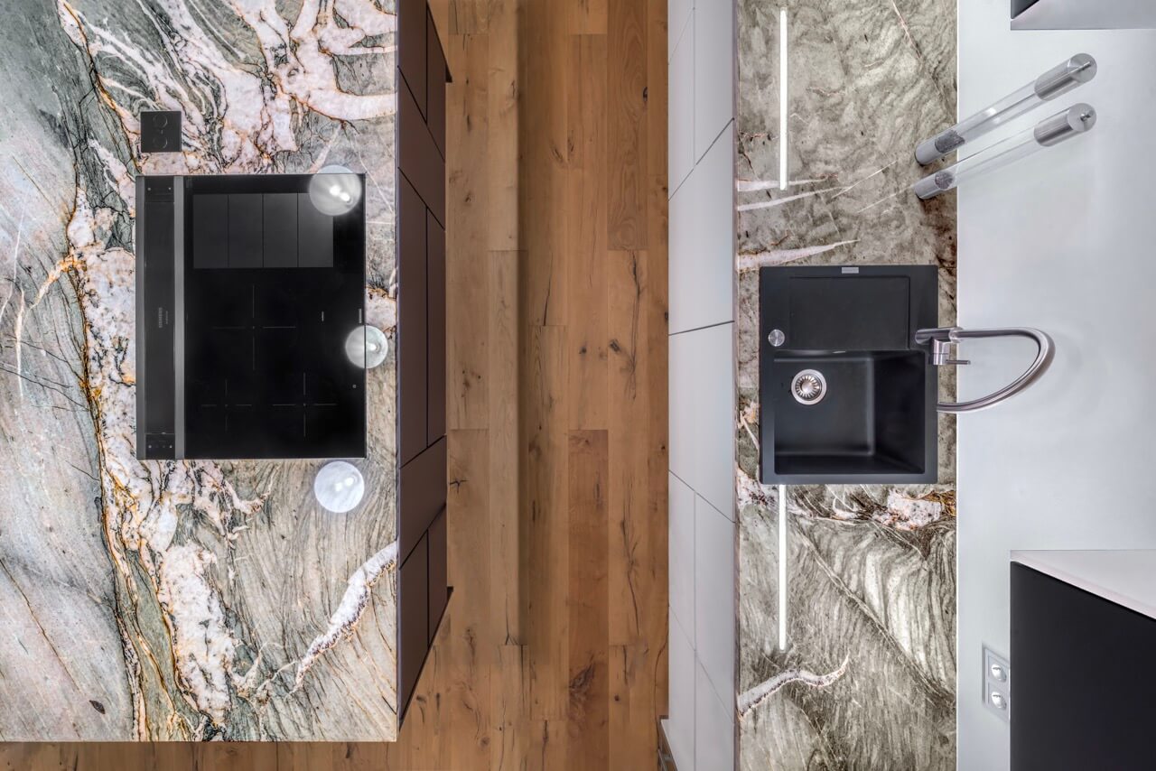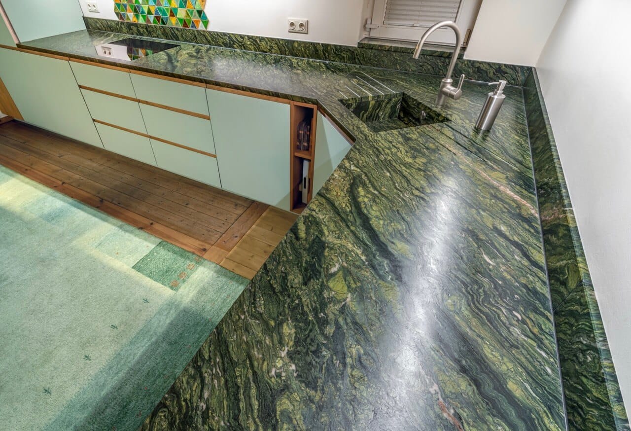 Die glatten, porenfreien Oberflächen lassen sich einfach abwischen – perfekt für die Küche. Flecken und Bakterien haben keine Chance. Praktische Tipps zur Reinigung und Pflege von Natursteinflächen finden Sie hier.